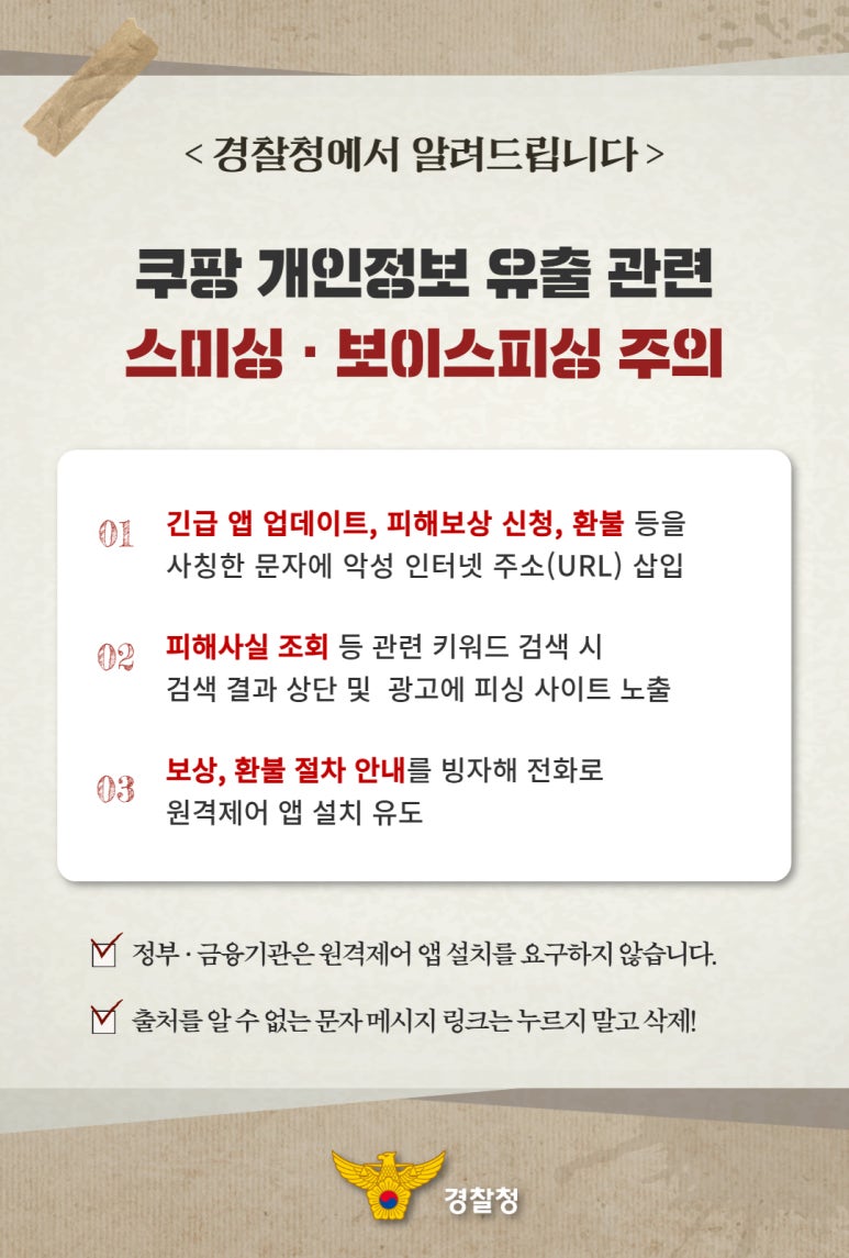 [후후뉴스x경찰청] 쿠팡 개인정보유출 피싱주의!